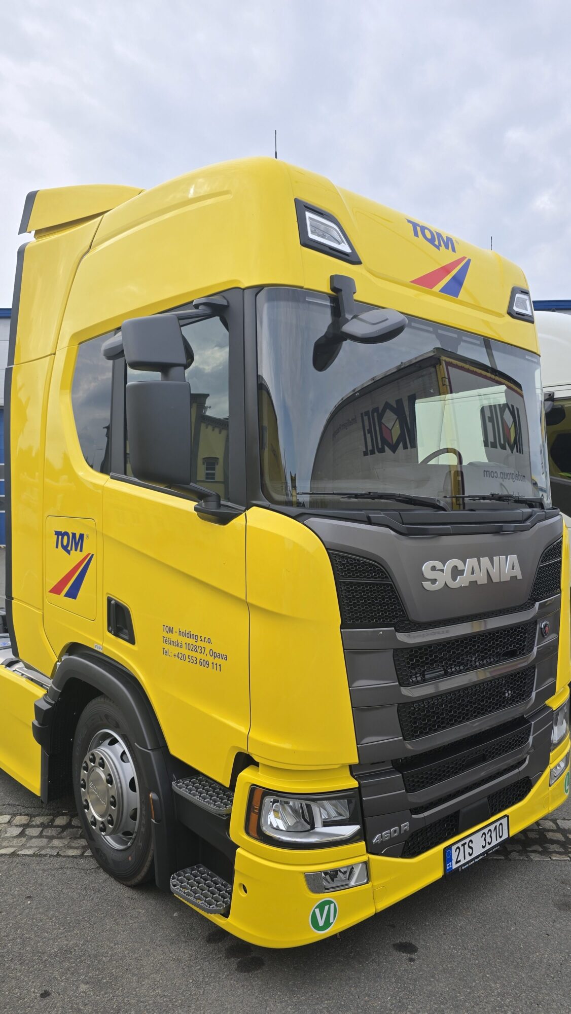 Na podzim 2025 do flotily přibylo 5 nových tahačů Scania R 460 ve žlutém provedení. Vozidla jsou vybavena 13litrovým šestiválcovým motorem o výkonu 460 koní, automatickou převodovkou a prémiovou sedačkou pro řidiče. Všechna splňují nejpřísnější emisní normu Euro 6 SUPER a rozšiřují kapacitu možností mezinárodních přeprav TQM.