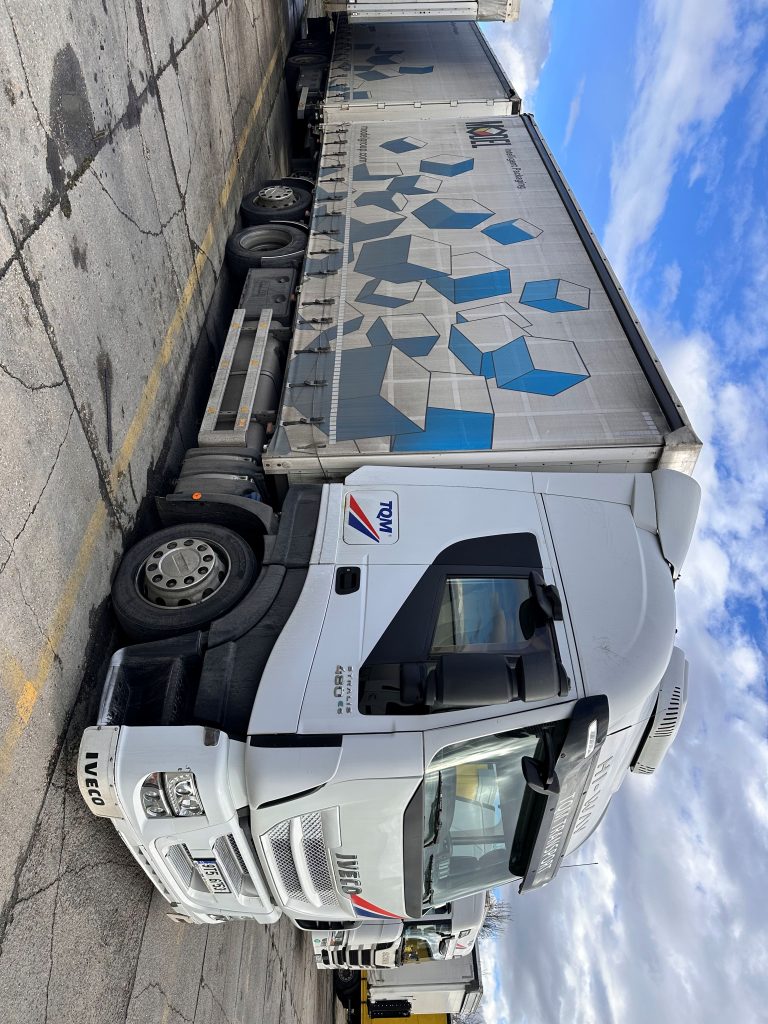 Nákladní vozidlo Iveco (plachty: bílo-modré)